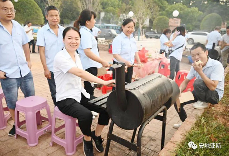 歡聲笑語(yǔ)隨著縷縷炊煙飄蕩在空中,大家烤的烤、扇風(fēng)的扇風(fēng)、刷料的刷料、準(zhǔn)備食材的準(zhǔn)備食材、吃的吃、喝酒的、喝可樂(lè)的不忘舉杯對(duì)飲,短短2個(gè)小時(shí),大家相互協(xié)作,相互探討又相互調(diào)侃,整個(gè)場(chǎng)面是如此的和諧、放松而又自在,將所有的不愉快和壓力統(tǒng)統(tǒng)甩到了一邊。